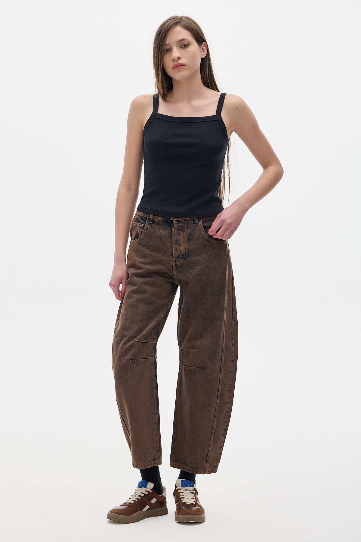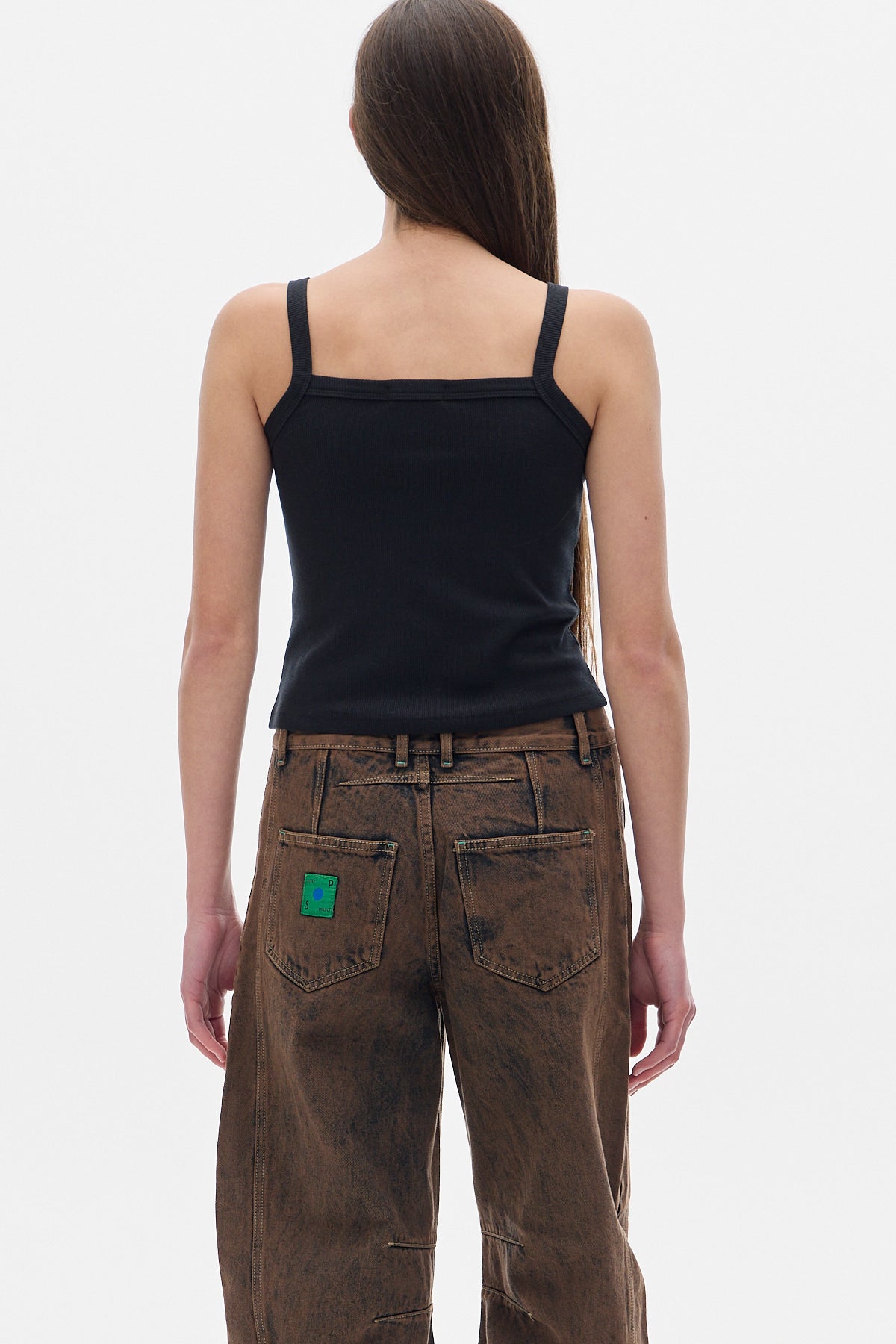 Basic fitted tank top, soft and comfortable fabric. Thin straps and a straight neckline.