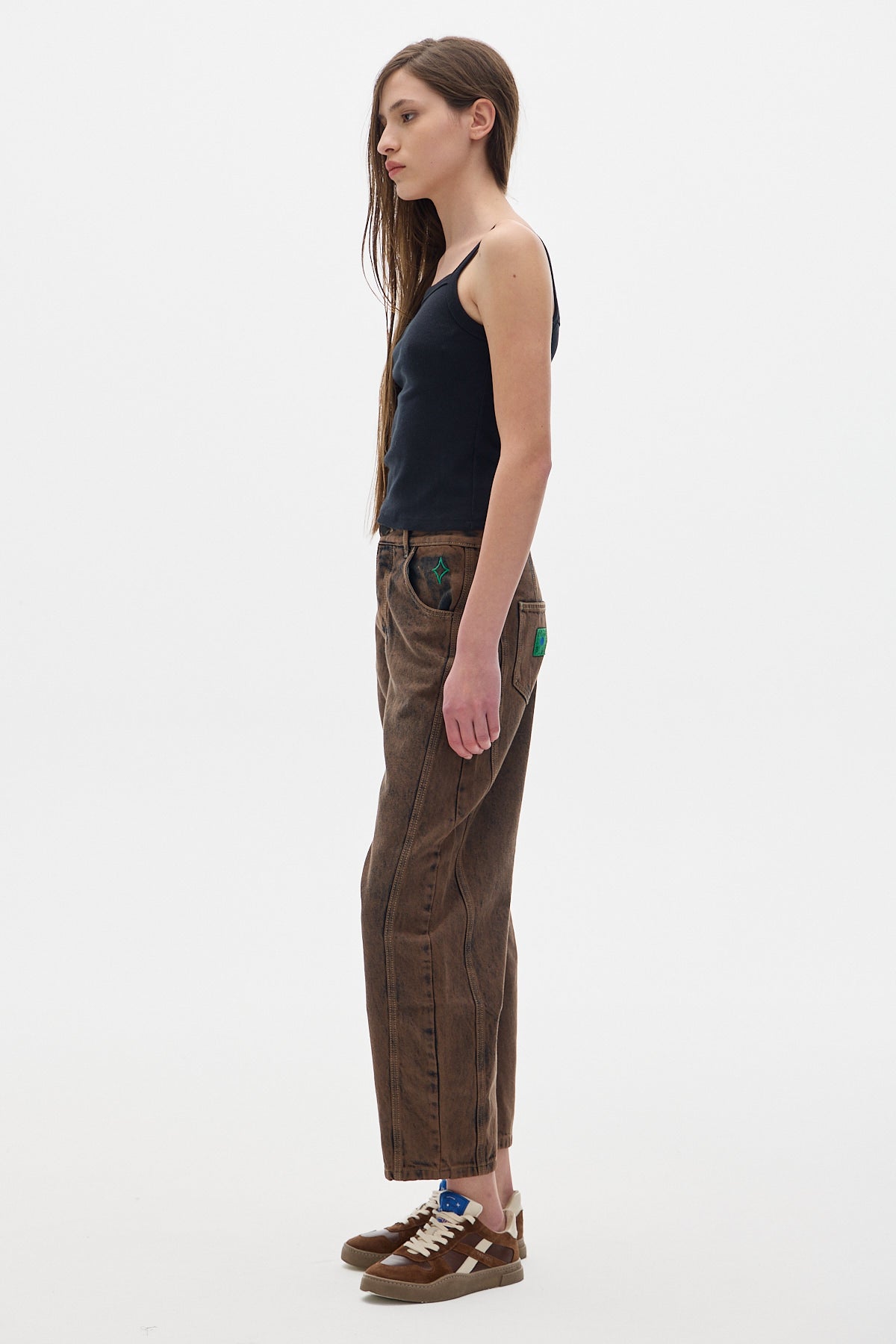 Tone-on-tone embroidered logo detail.