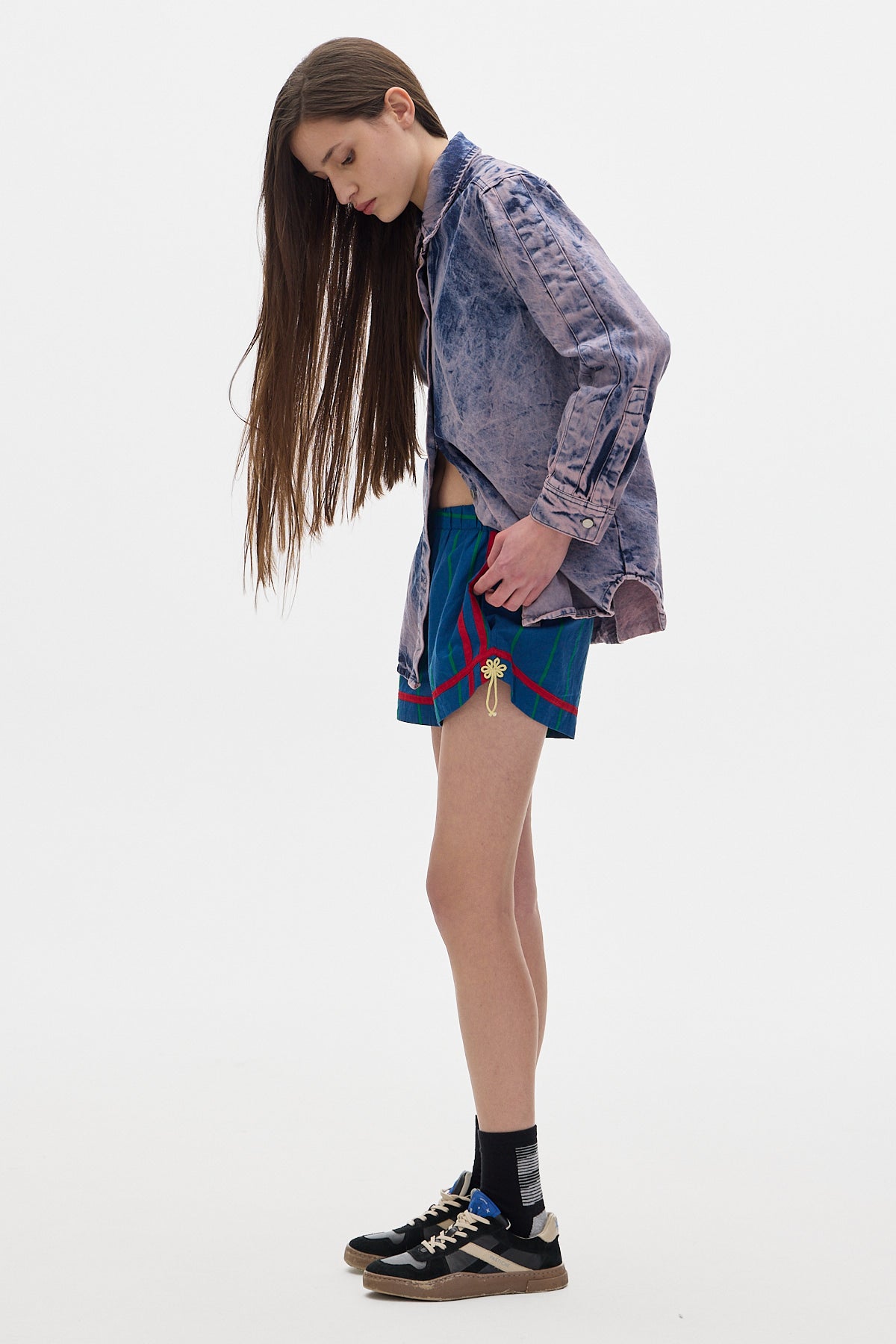 Oversized denim shirt with a washed finish.